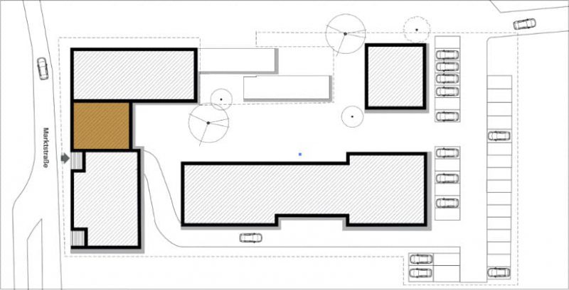 Auf einem Areal von ca. 3.400 qm ist in der Innenstadt von Kandel ein in sich geschlossenes Gebäudeensemble mit sechs Gewerbeeinheiten sowie 19 Wohnungen entstanden. Es setzt sich aus fünf Baukörpern zusammen, die sich um einen gemeinsamen Innenhof gruppieren, der sich für Besucher öffnet, aber auch Privatsphäre für die Nutzer und Bewohner schafft.